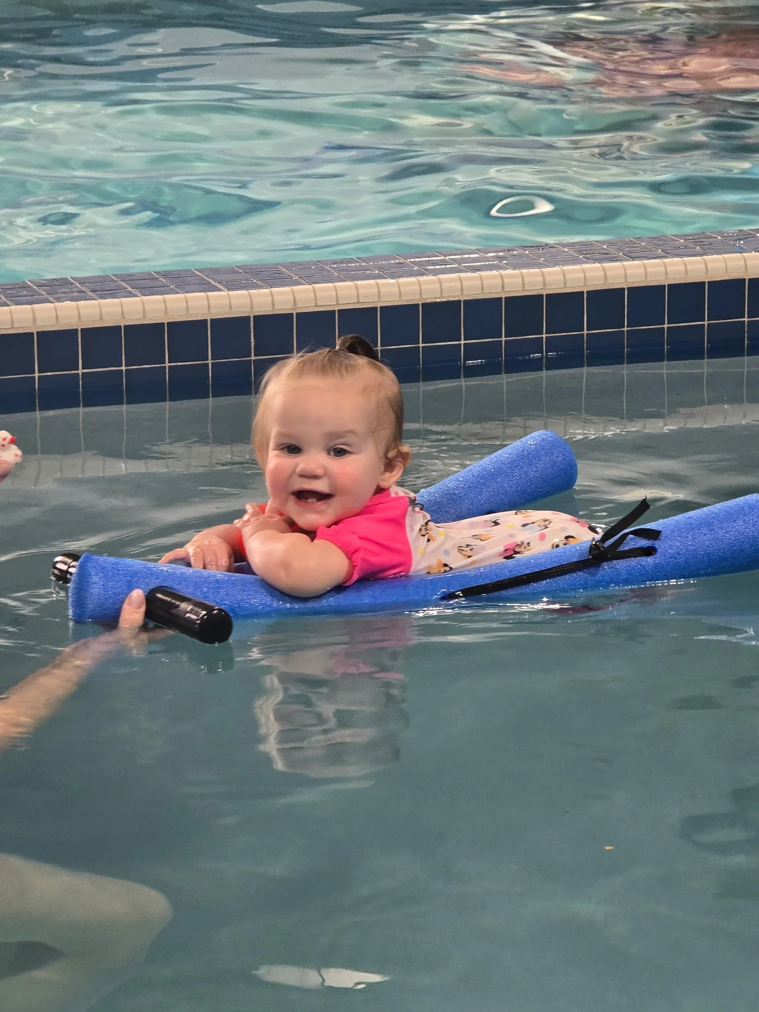 Before lessons, Johnnet wasn’t very mobile and was often wrapped closely to one of her parents. Still, her mom admits the worry never fully went away. If something happened and they ended up in the water, Johnnet didn’t yet have the skills to respond, no blowing bubbles, no floating, no awareness of how to help herself. The uncertainty was heavy.