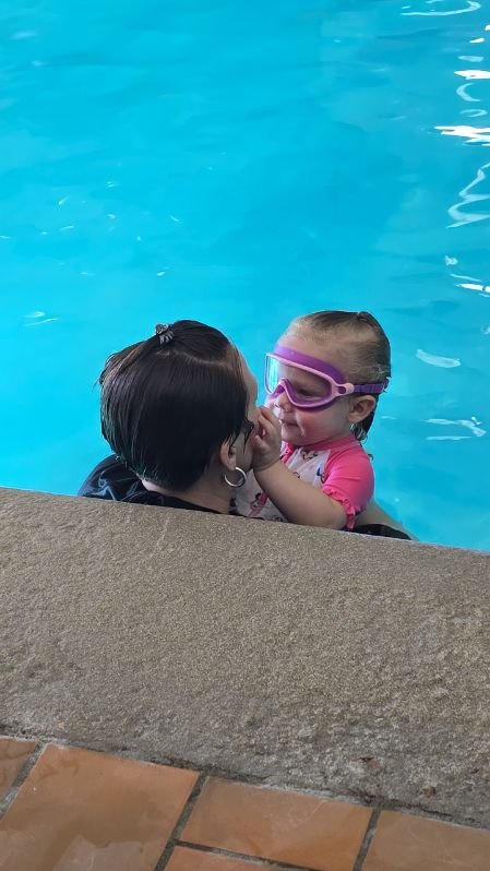 Johnnet became more independent, more willing to try things on her own, and more confident both in and out of the water. One defining moment came during a family swim before Christmas. Johnnet eagerly waited for permission before entering the water, and when she was given the okay, she jumped in with confidence, kicking toward her mom, then rolling onto her back and floating. Watching her trust herself in that moment was emotional. “The confidence she had in herself was amazing to see,” her mom shared. That was the moment both parents knew the lessons were truly working.